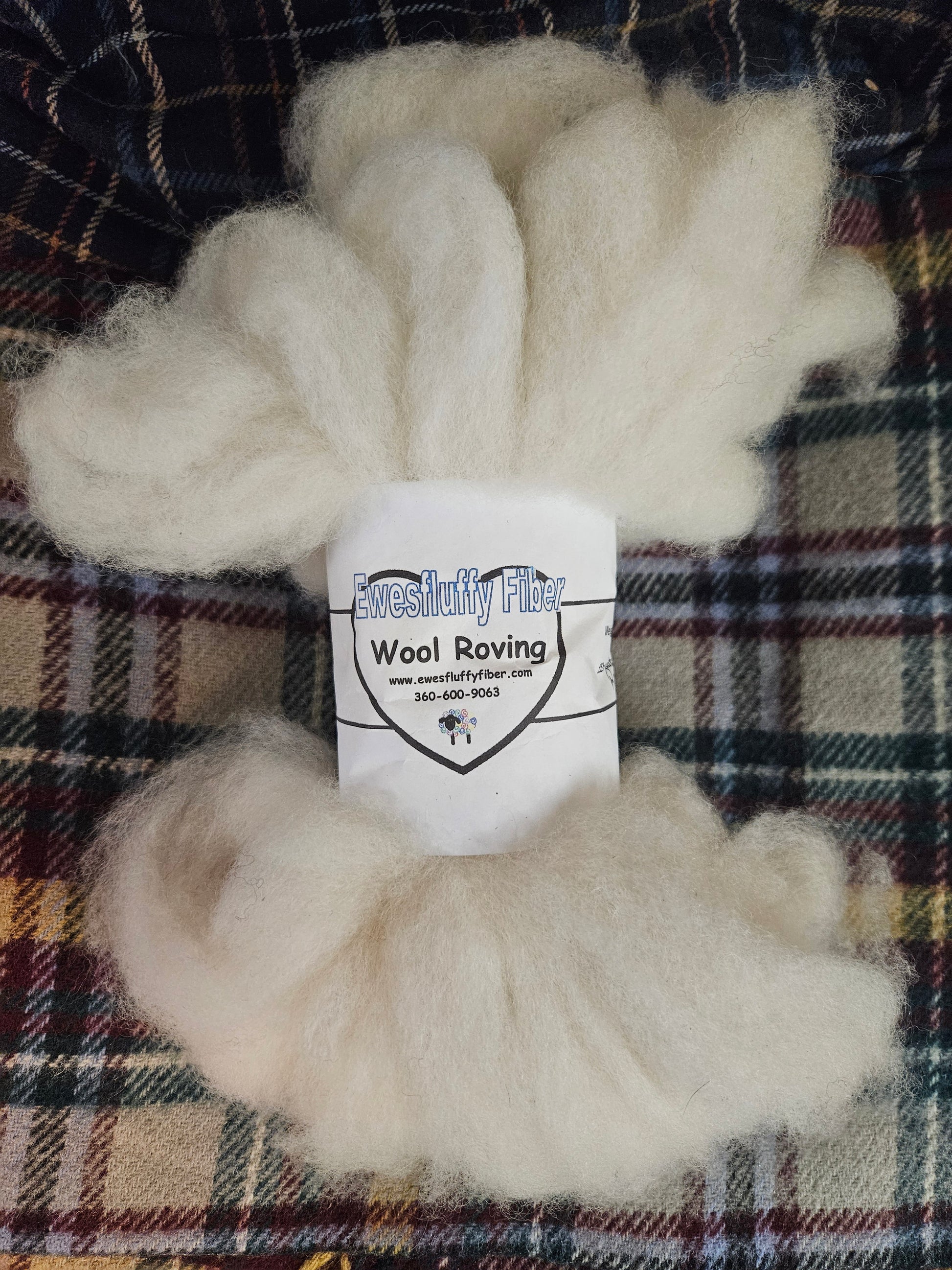 White Romney Wool Roving - 2 oz - Spinning - Weaving - Felting - Crafts